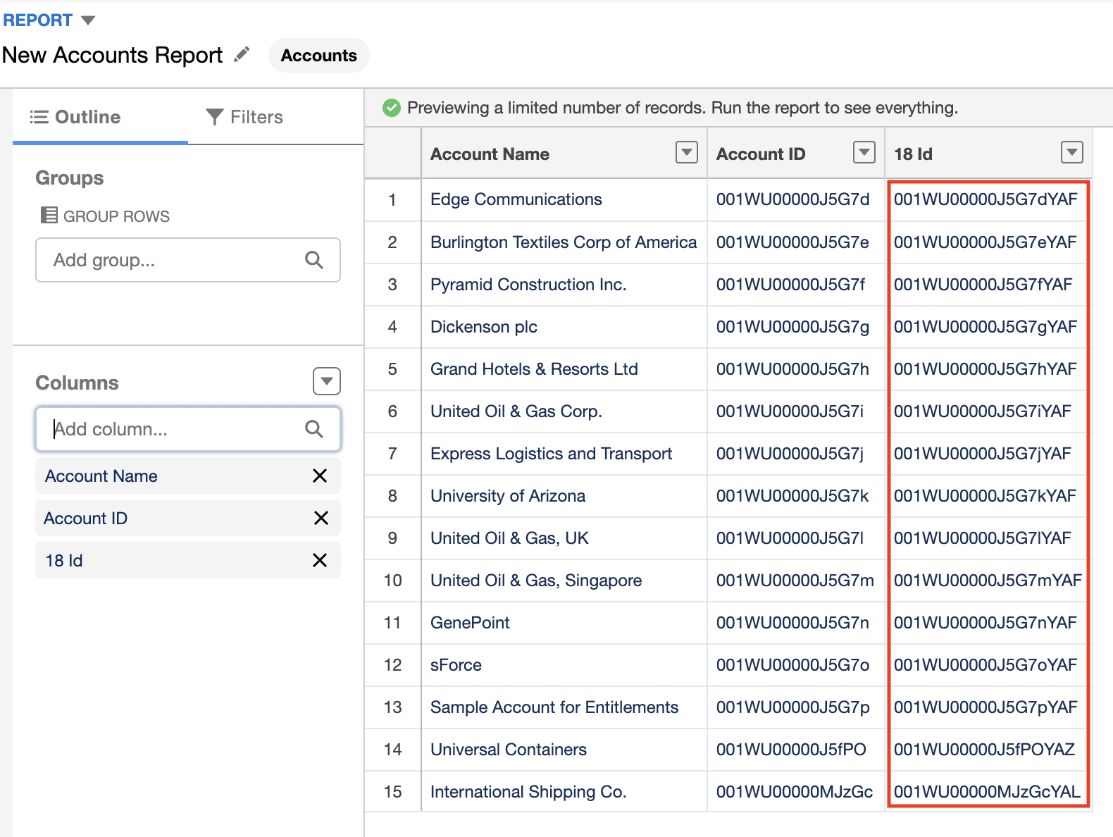 3. Direct Export of 18-Digit IDs Using Salesforce Tools